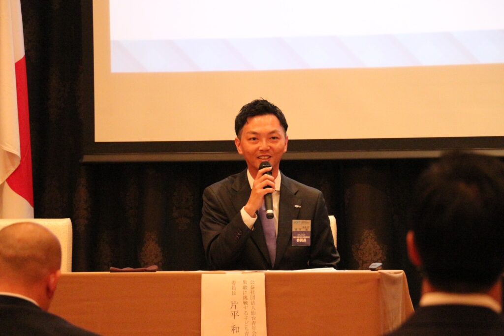事業報告会では、宮城ブロックの11LOMが展開した各種事業が発表されました。仙台青年会議所からは宮城ブロック協議会へ総務委員長として出向している小山悠君がファシリテーターとして、果敢に挑戦する子ども育成委員会の片平和委員長がパネリストとして登壇し、8月に実施した事業の「限界突破!〜新たな自分への挑戦〜」を報告しました。