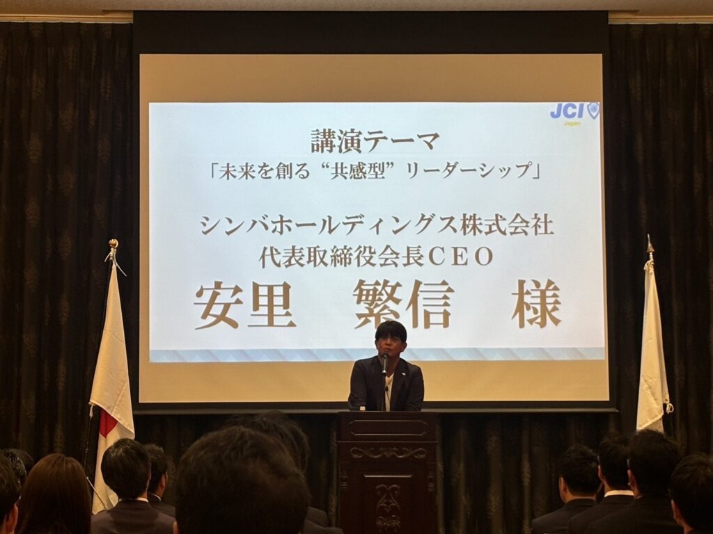 続くアカデミー閉校式では、2009年度 公益社団法人 日本青年会議所 第58代会頭であり、現在も多方面で活躍を続ける安里繁信先輩を講師としてお迎えし、「未来を創る"共感型"リーダーシップ」の講演をいただきました。